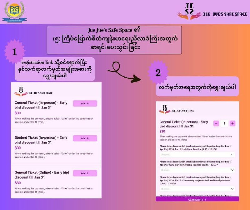 To ensure a seamless experience for all participants, we have outlined the registration steps below. For those who prefer to complete their registration using Myanmar Kyat (MMK), please reach out to us directly via our Page Messenger.