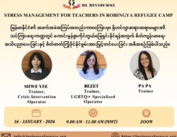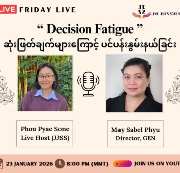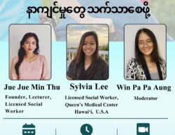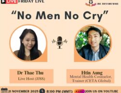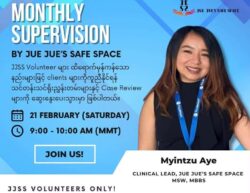 Every Friday at 8:00 PM on Jue Jue’s Safe Space Facebook Page, Live webinar with mental health experts and professionals is aired to engage with our online audience from around the world. These sessions cover a variety of relevant topics aimed at increasing awareness and understanding of mental health issues in Myanmar community.